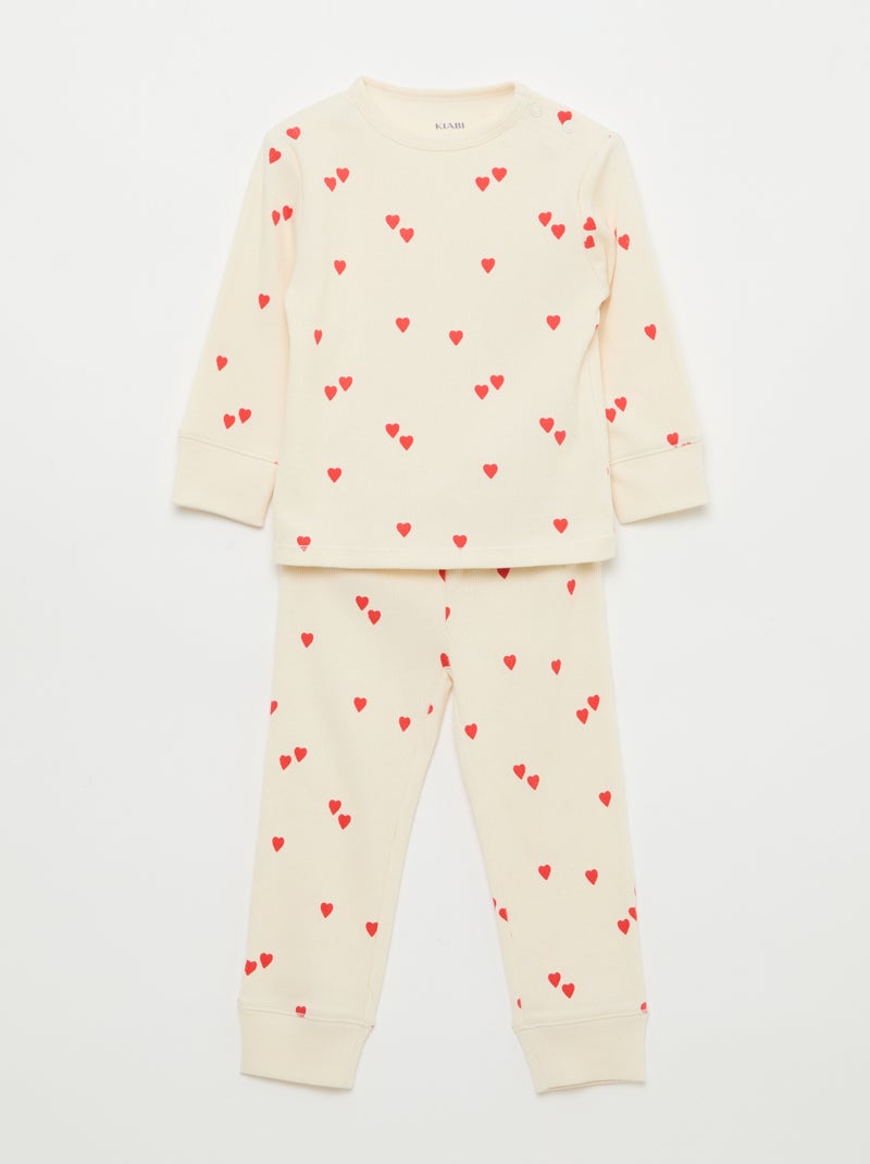 2-delige pyjamaset van geribd katoen - Wit
