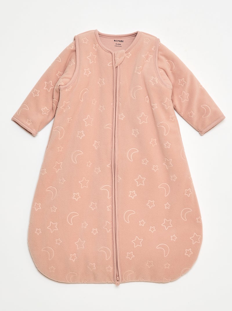 Babyslaapzakje van warme fleecestof met afneembare mouwen met drukknopen, TOG-waarde 2.5 - Rose