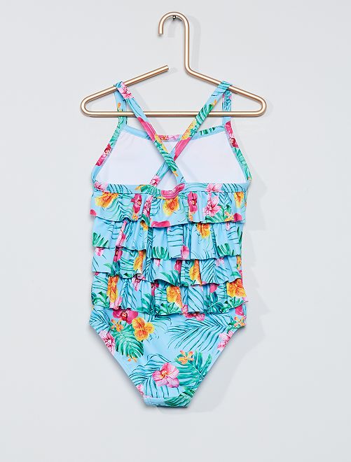 We duiken de zomer in met dit badpak met tropische print! De kleine volants maken dit model bijzonder leuk!