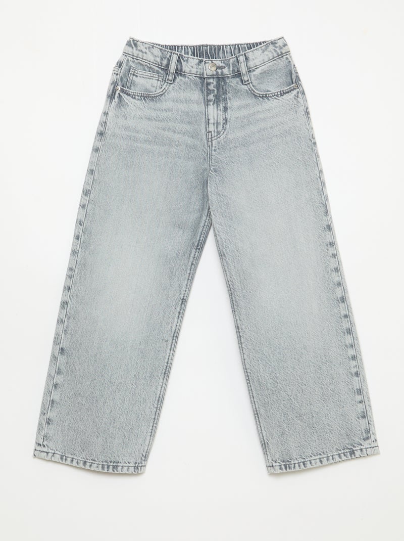 De baggy fit zal hem geweldig staan! - Baggy jeans - Van katoen - 5 zakken - Riemlussen - Contrasterende stiksels - Knoop en rits onder flap