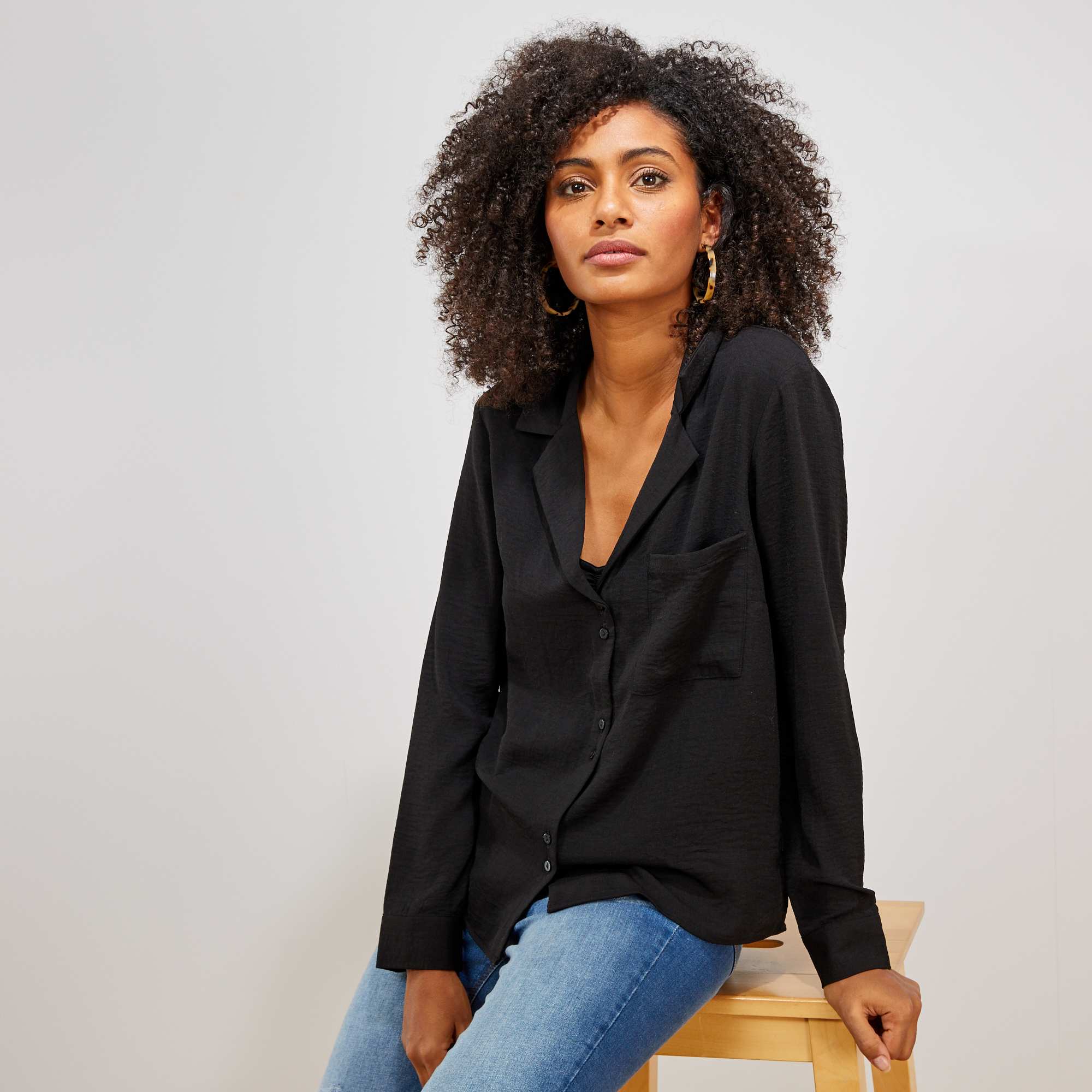 Blouse met een platte kraag en borstzak                                                                 zwart