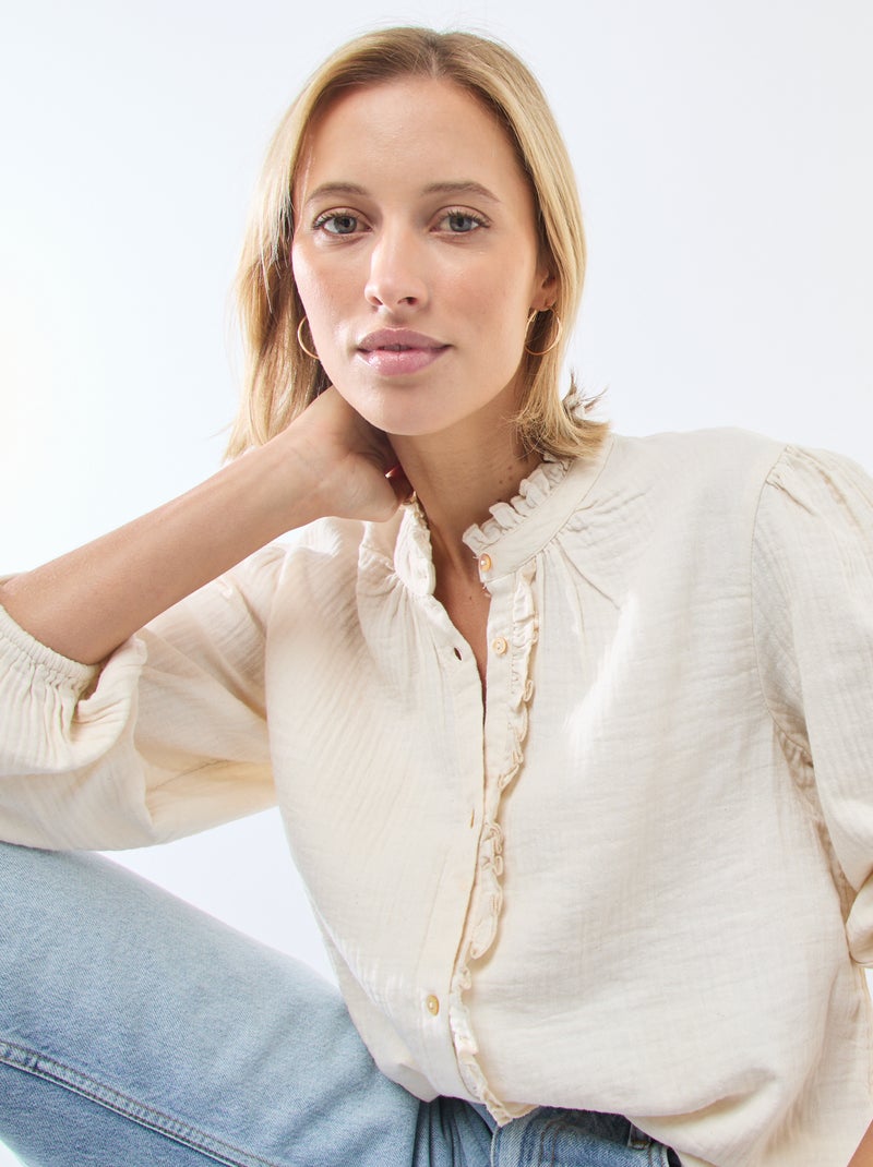 Blouse van katoengaas met golvende randen - Wit