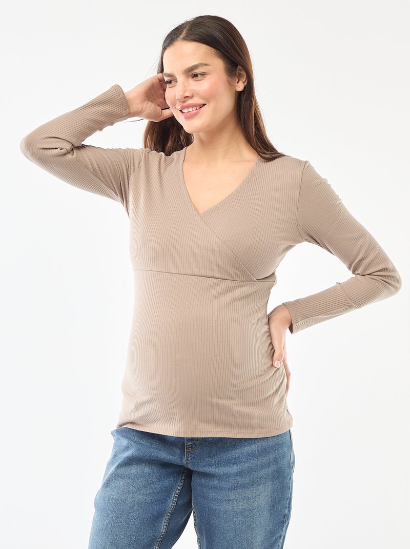 Borstvoedings-T-shirt van ribstof - Biege