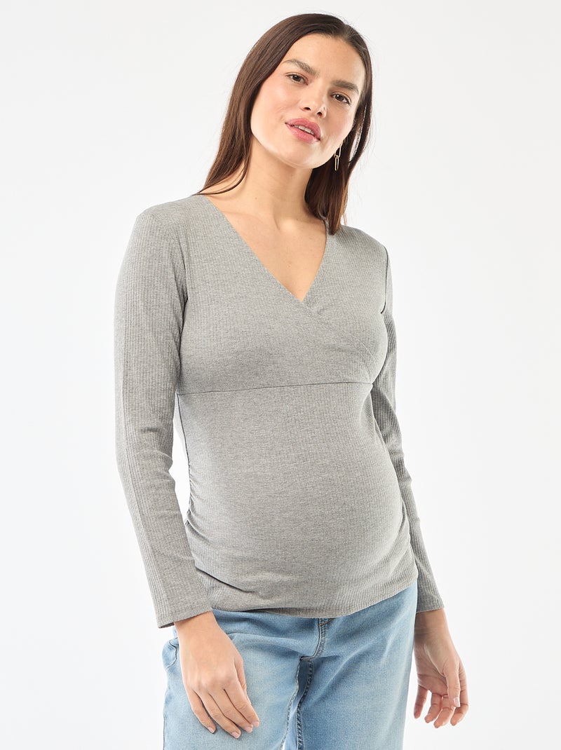 Borstvoedings-T-shirt van ribstof - Grijs
