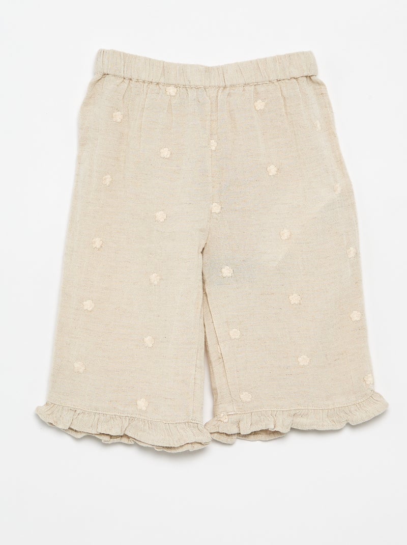 Een leuke geborduurde broek, ideaal voor de zomerse uitstapjes van je kleintje.
