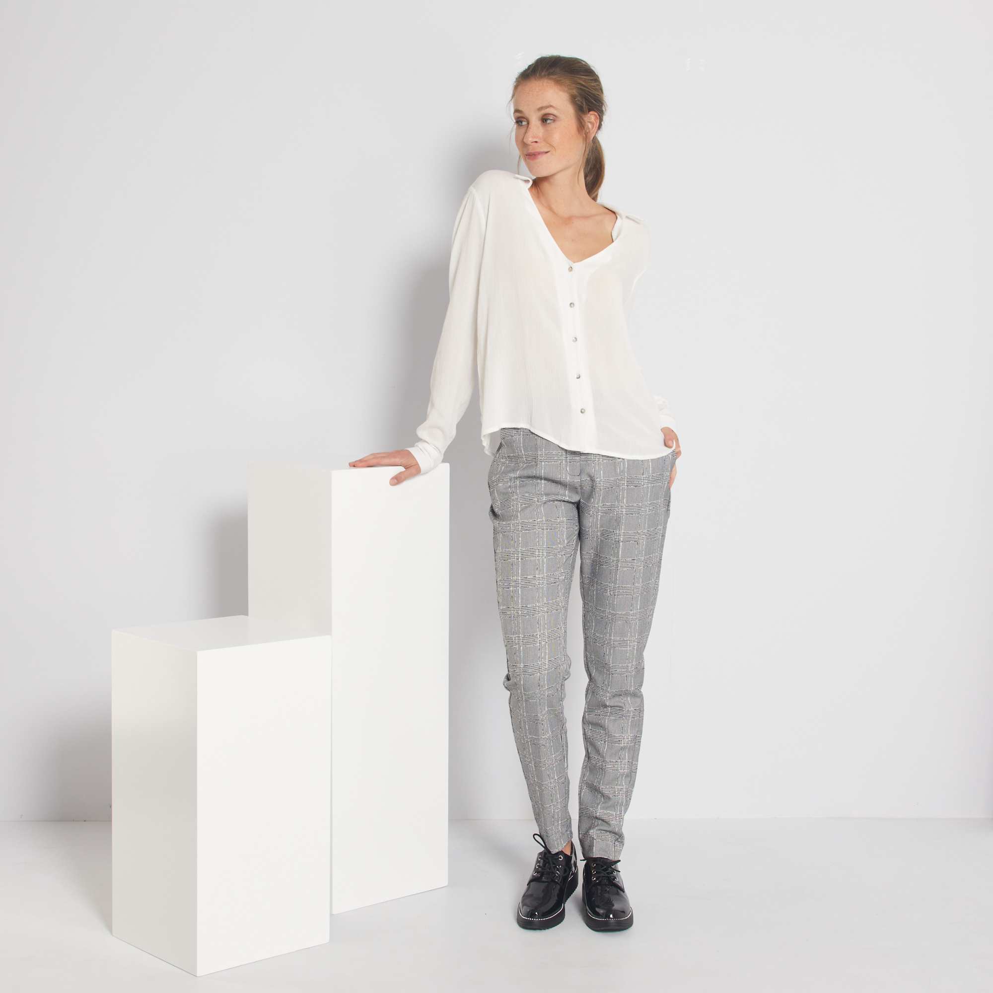 Broek met pied-de-puce-print