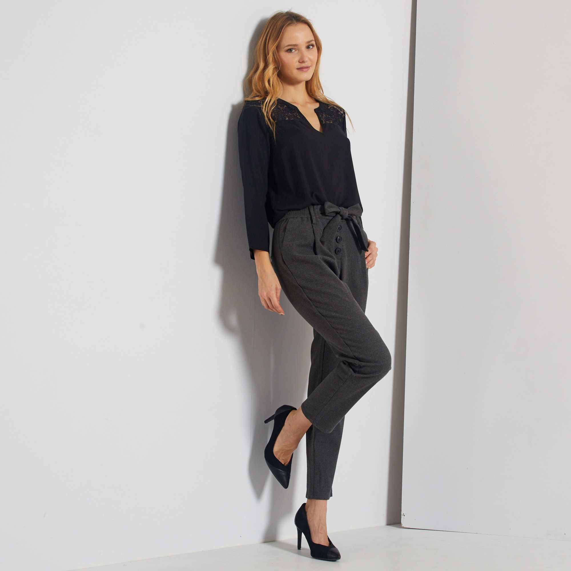 Deze broek met wortelmodel past bij alle stijlen schoenen.