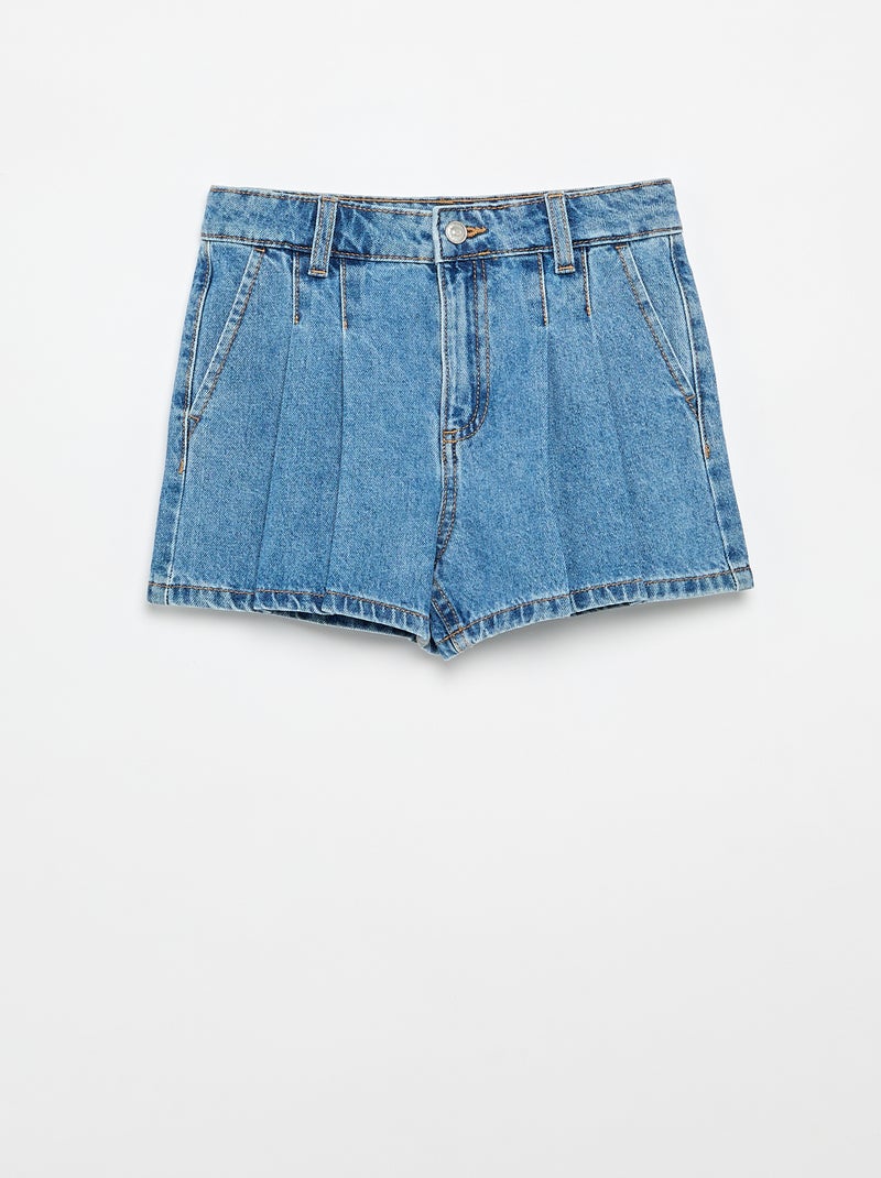 Denim short met plissé-effect - Blauw