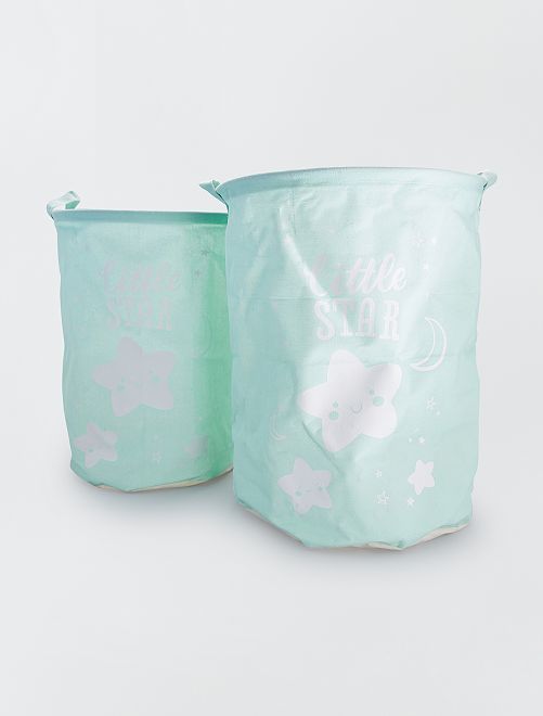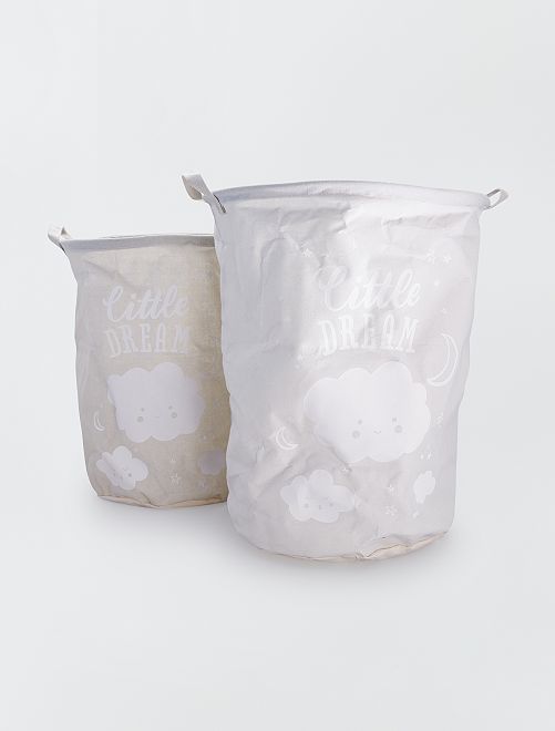 Een dubbele wasmand die opgaat in de decoratie van de babykamer!