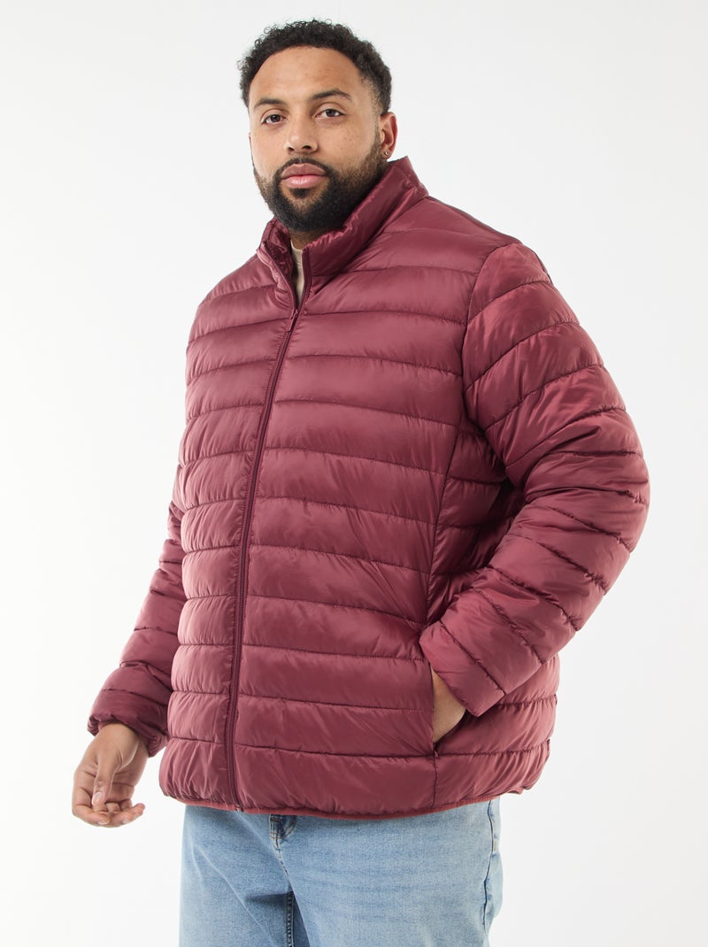Effen licht donsjack met lange mouw en opstaande kraag - Rood