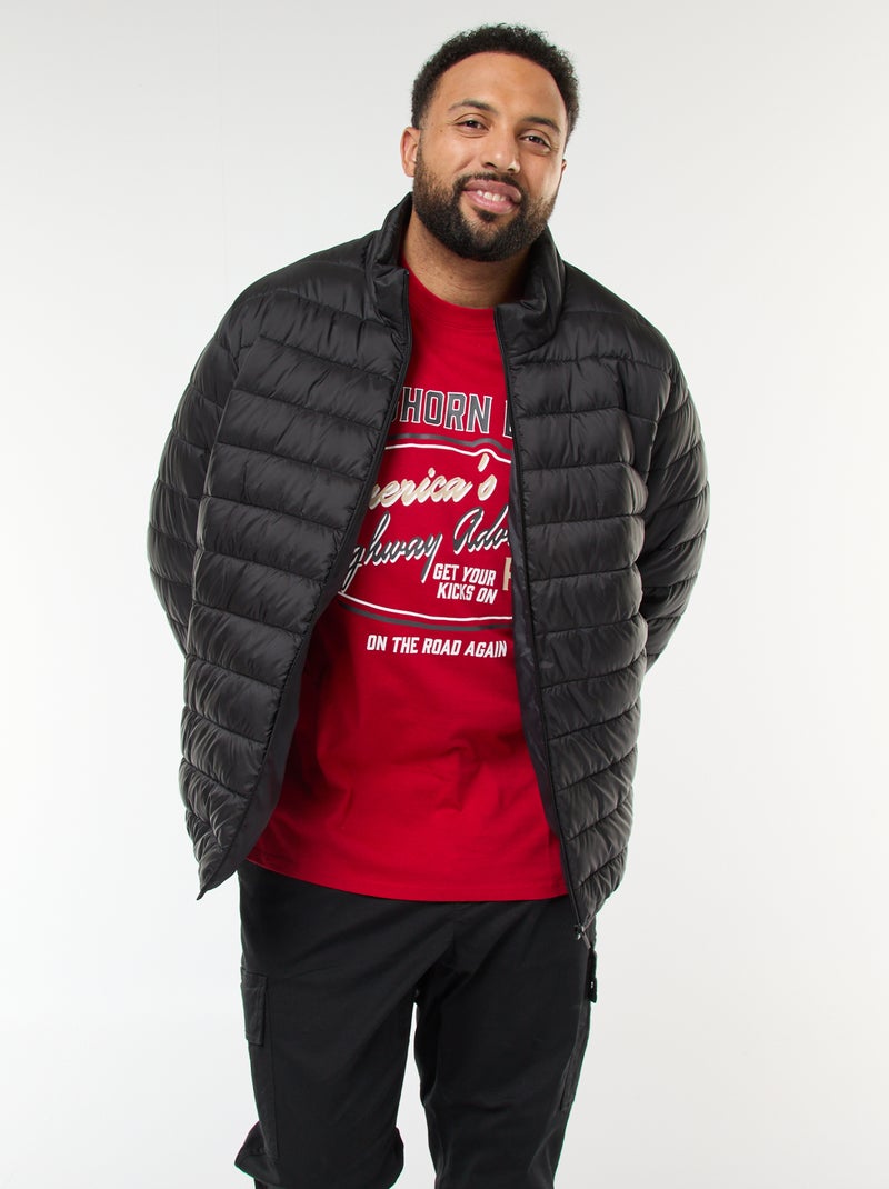 Effen licht donsjack met lange mouw en opstaande kraag - zwart