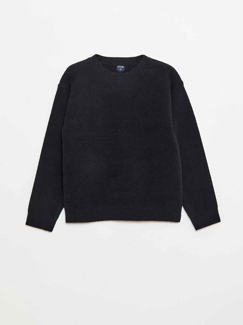 Effen losvallende trui met ronde hals - Zwart