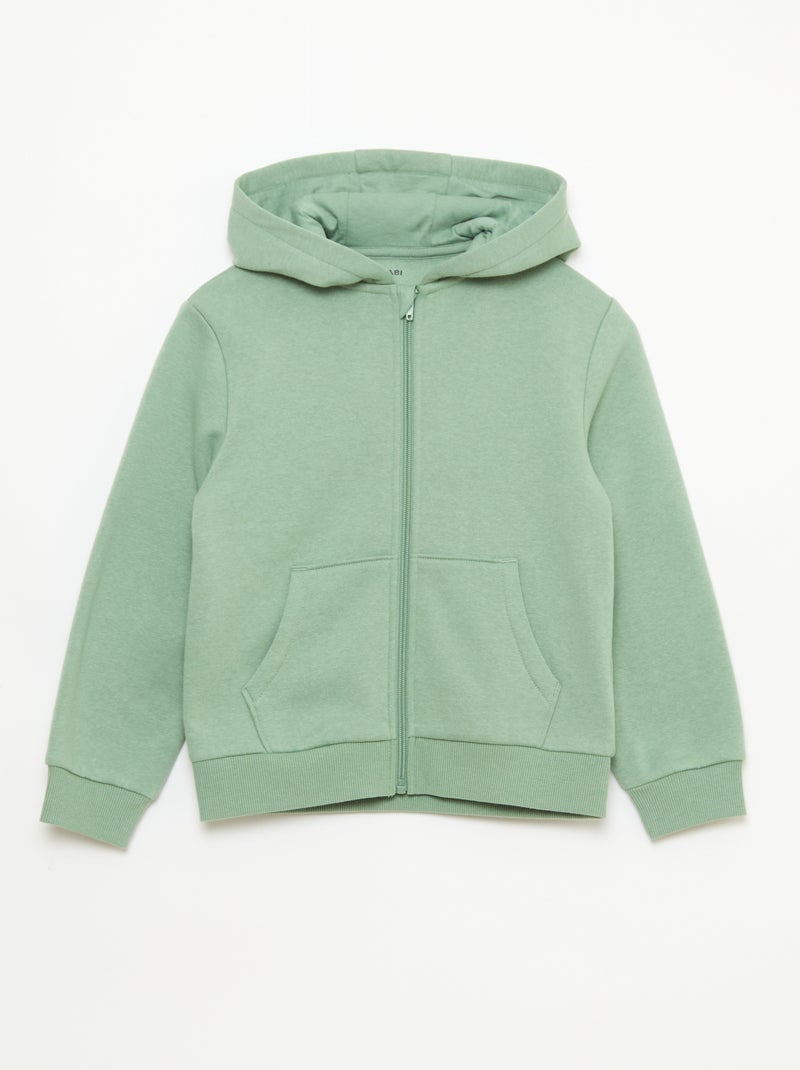 Effen sweater met rits en capuchon - Kaki