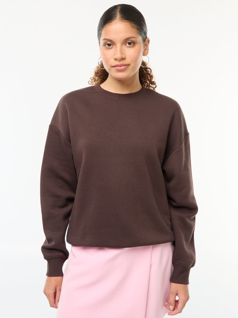 Effen sweater van warme joggingstof - bruin