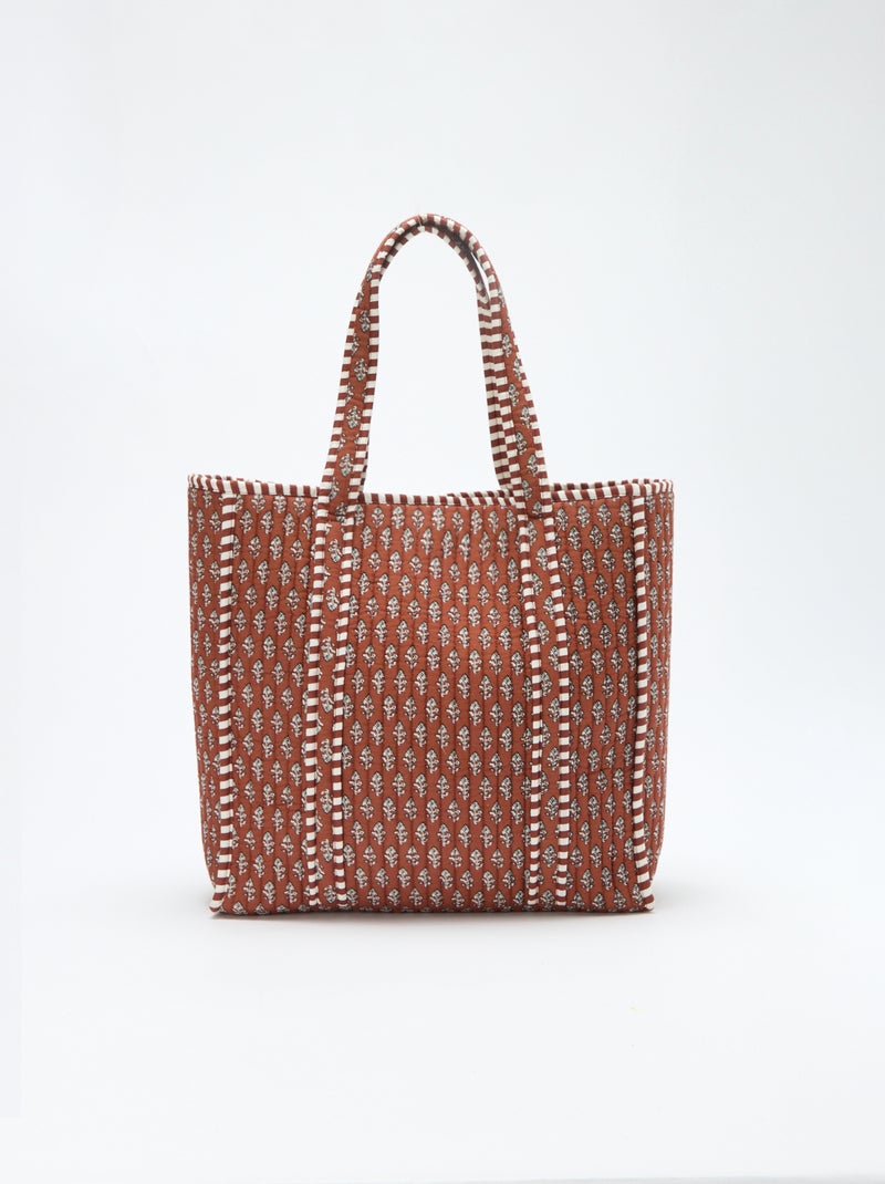 Gematelasseerde shopper met Indiaas motief - Biege