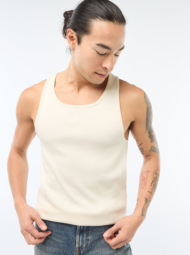 Een tanktop van geribbelde stof voor de mooie dagen!