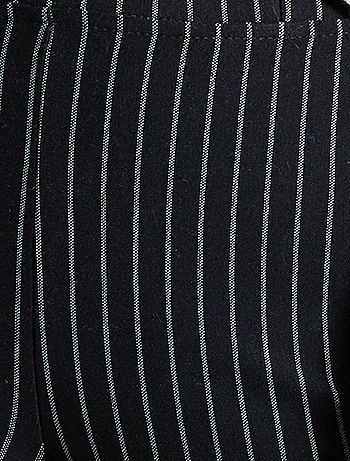 Het dikke en elastische milanotricot is perfect om op een frisse dag te dragen. We hebben ons hart verloren aan de streepjesprint!