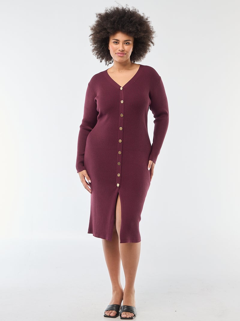 Een heerlijk warme jurk in de stijl van een vestje die perfect aansluit bij je rondingen dankzij de aansluitende snit.