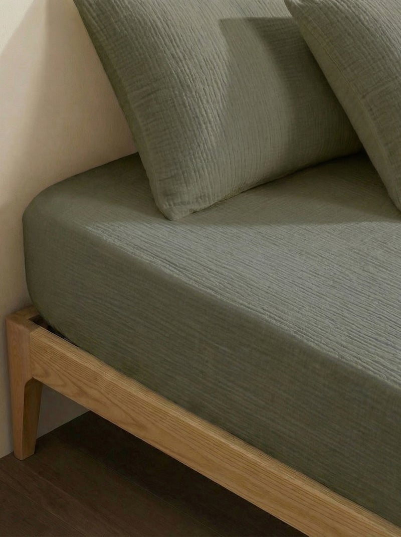 Hoeslaken 1 persoon (90x190 cm) van katoenen double gauze - Kiabi Home - groen