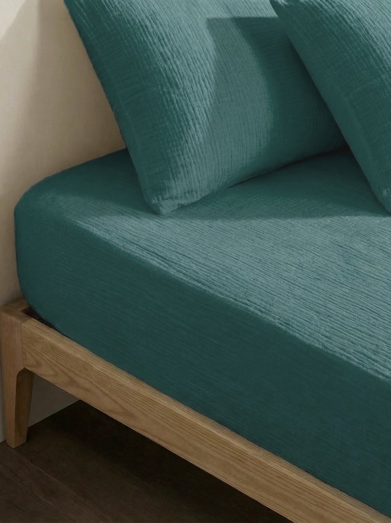 Hoeslaken 2 personen (140x200) van dubbel katoengaas - Kiabi Home - Groen