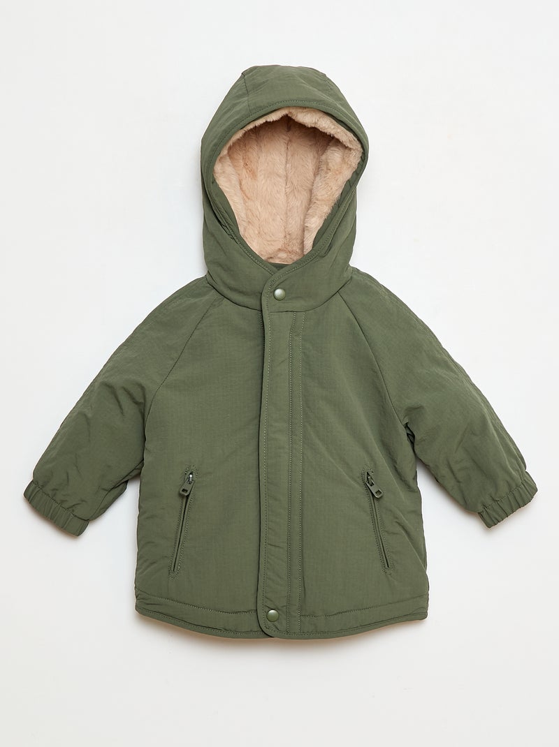 Jas met capuchon met voering van imitatiebont - Groen