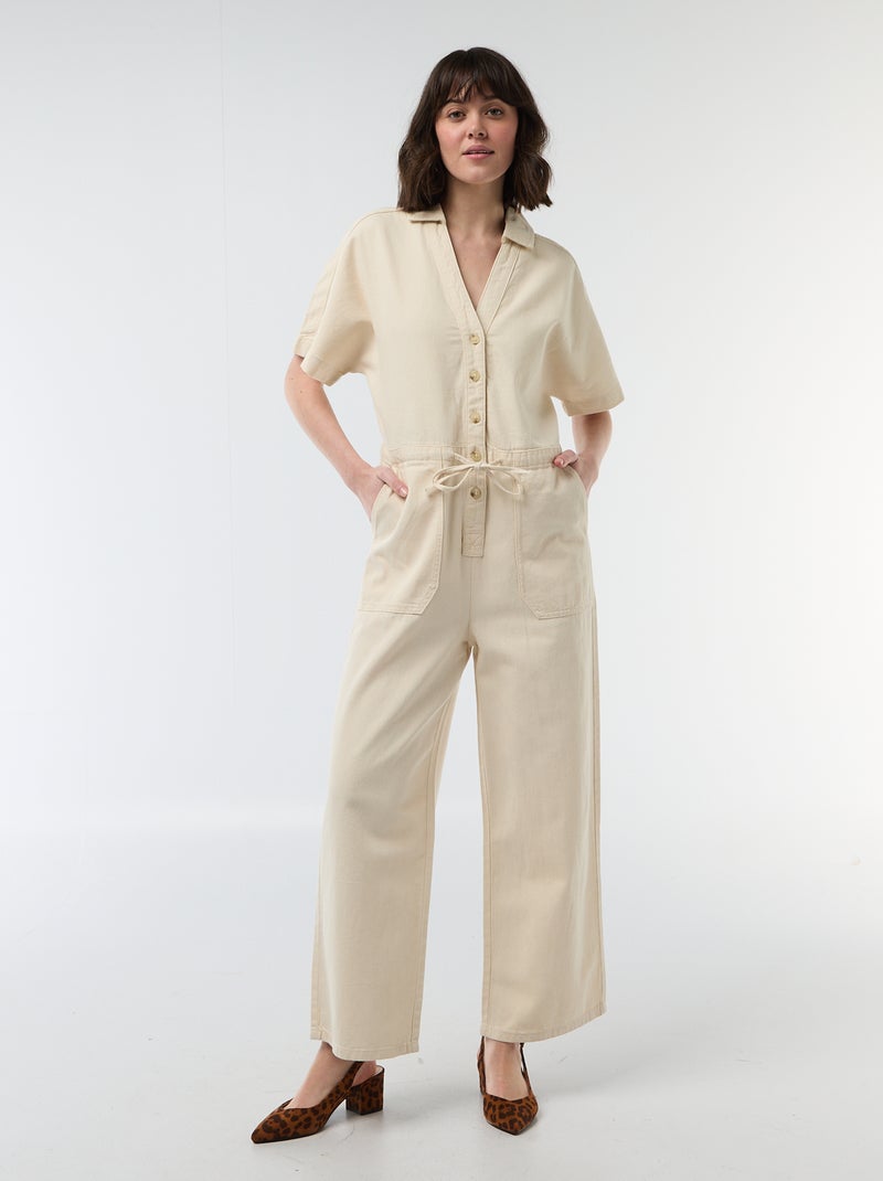 Jeans jumpsuit met korte mouwen - Wit