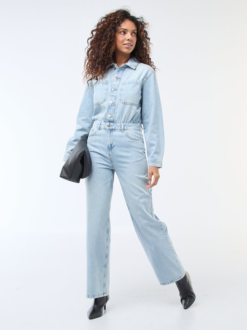 Jumpsuit van spijkerstof met lange mouwen - Blauw