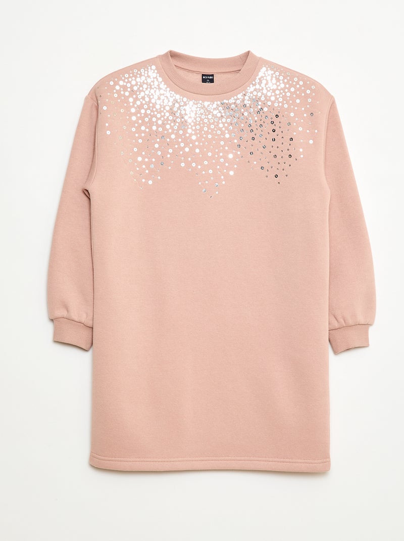 Jurk van joggingstof met detail in glitter-pailletten - Rose
