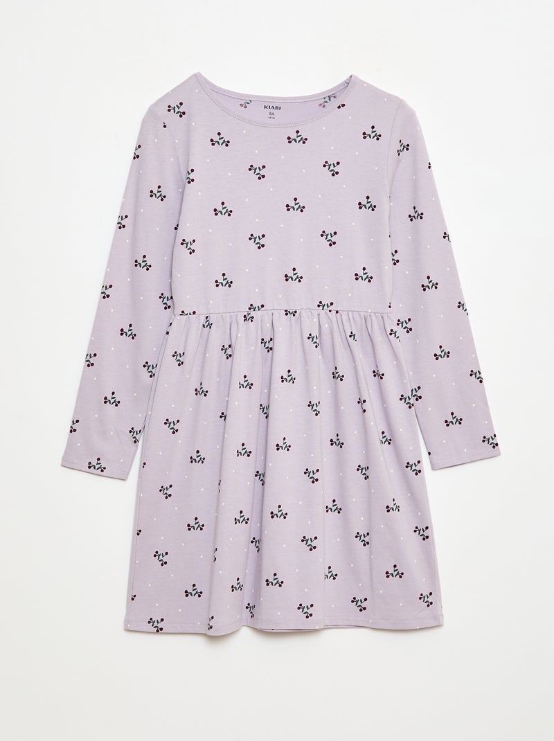 Katoenen jurk met motiefje - Paars