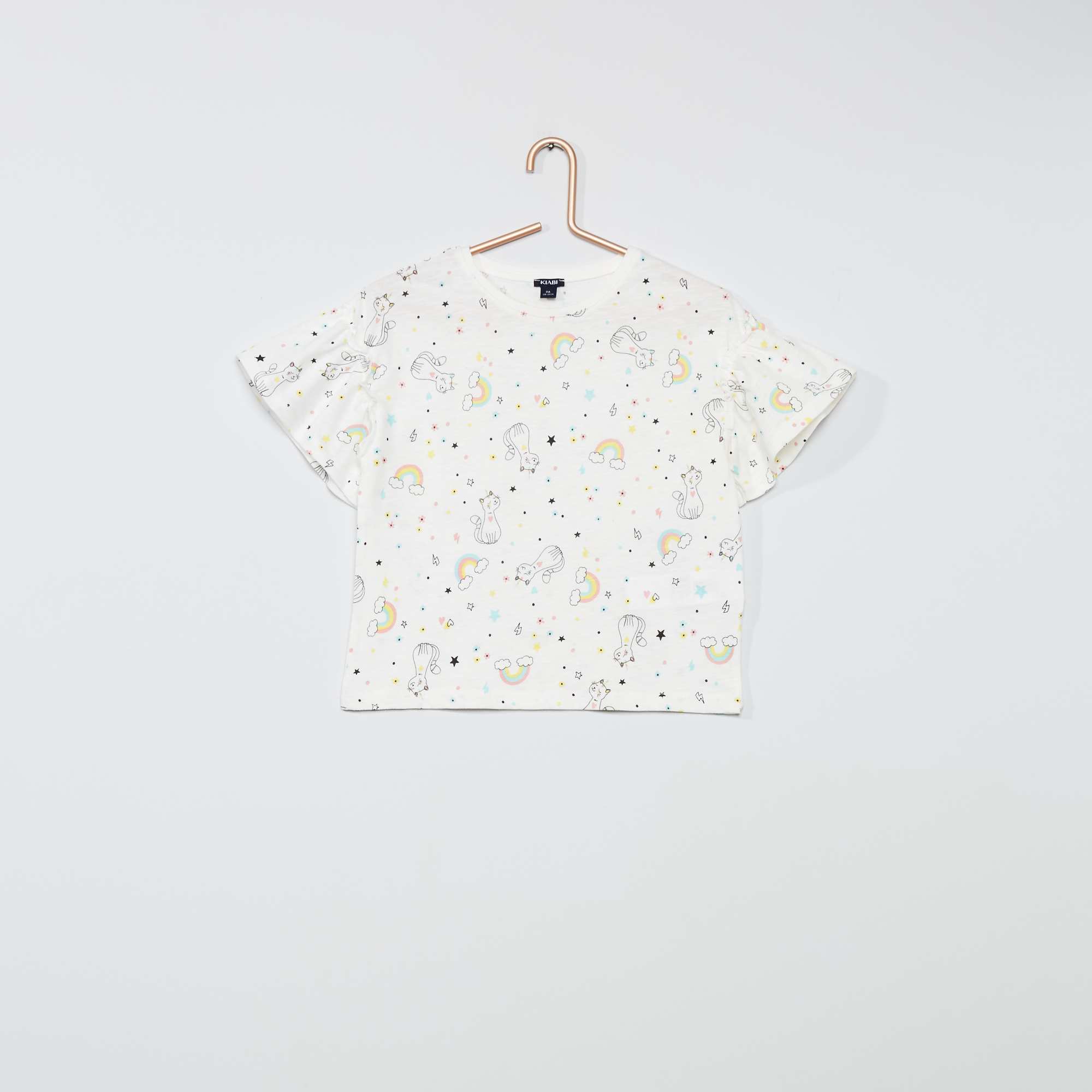 Katoenen T-shirt met eenhoornprint - BIEGE