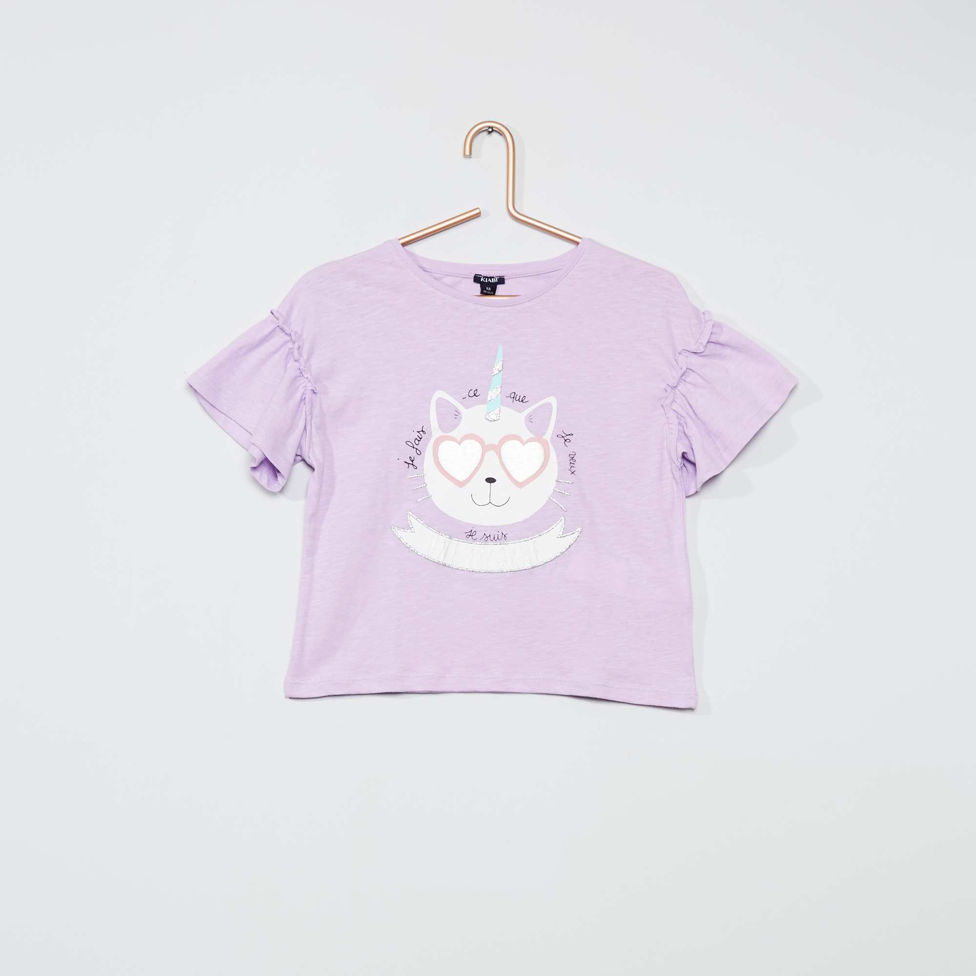Katoenen T-shirt met eenhoornprint - PAARS