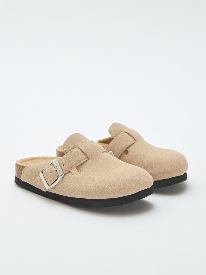 Klompen van suèdine met een gesp - Biege