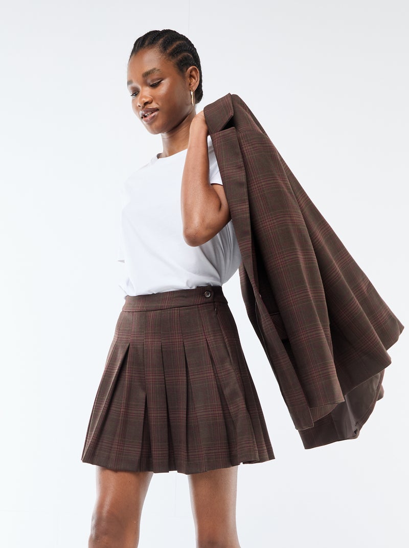 Korte geplooide rok met rits - Bruin