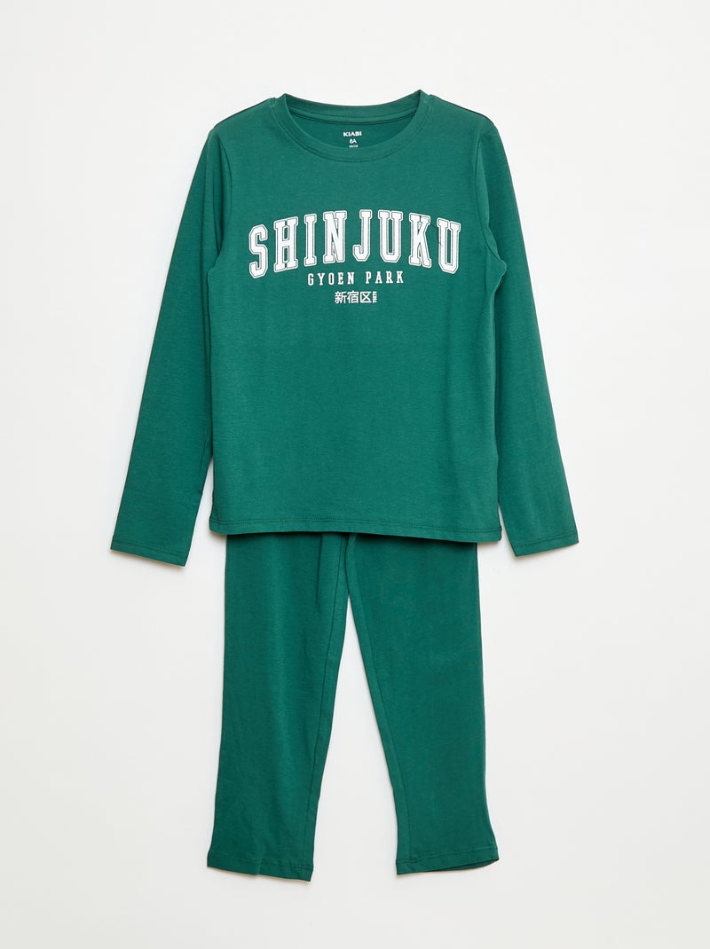 Lange pyjama van jersey met print - 2-delig - Groen