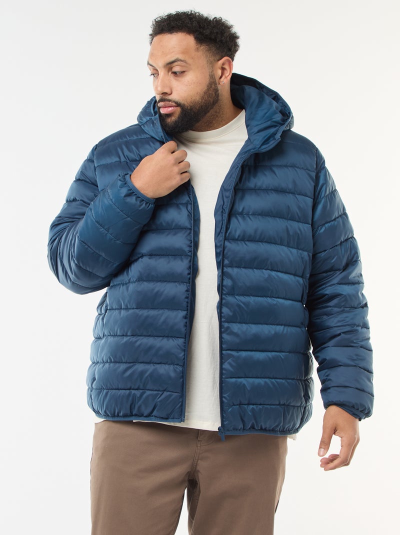 Licht, doorgestikt donsjas met capuchon - Blauw