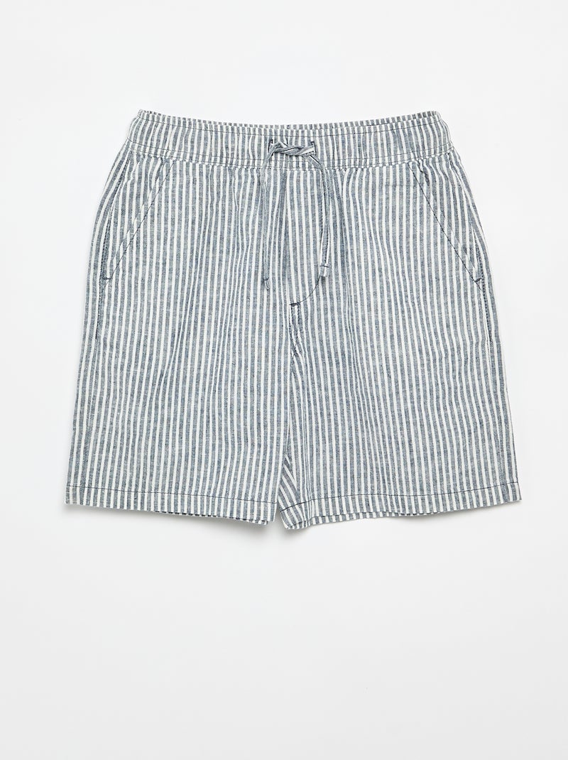 Lichtgewicht gestreepte short van linnenmix - Blauw