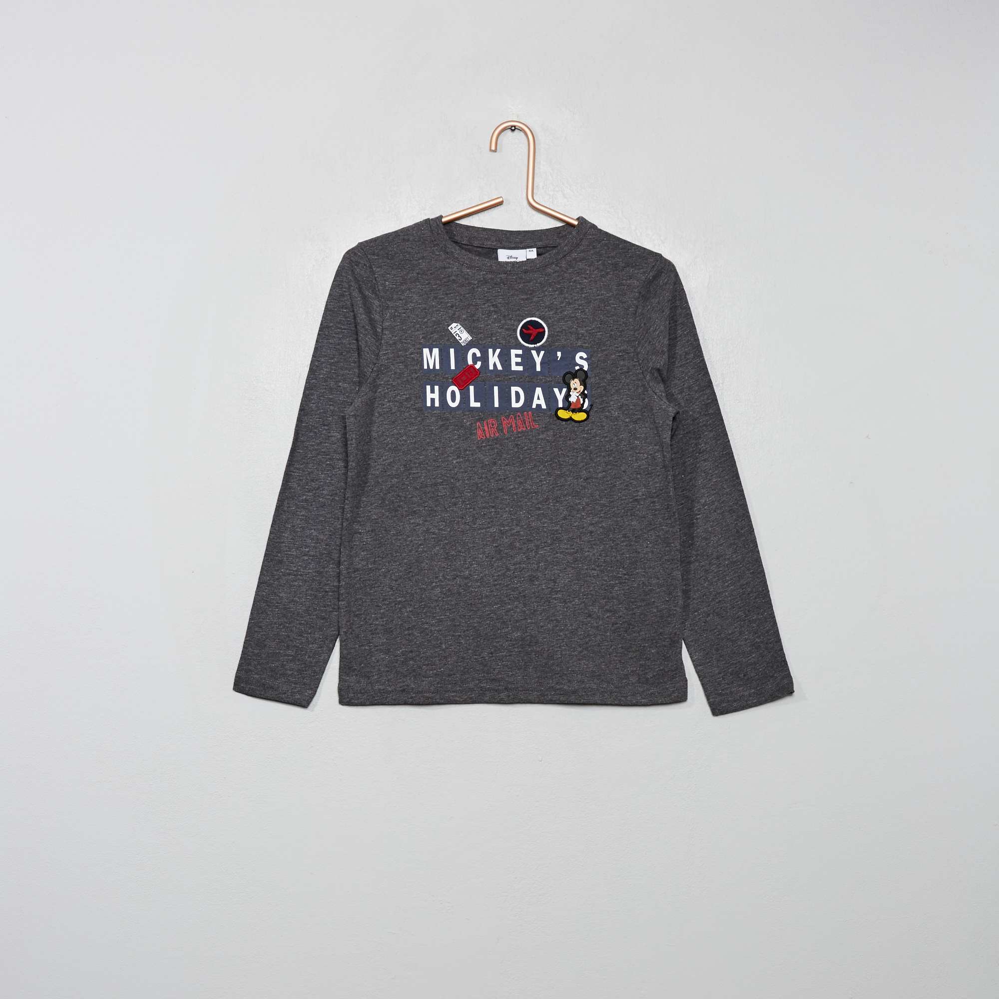 ‘Mickey’-T-shirt met borduursels - GRIJS