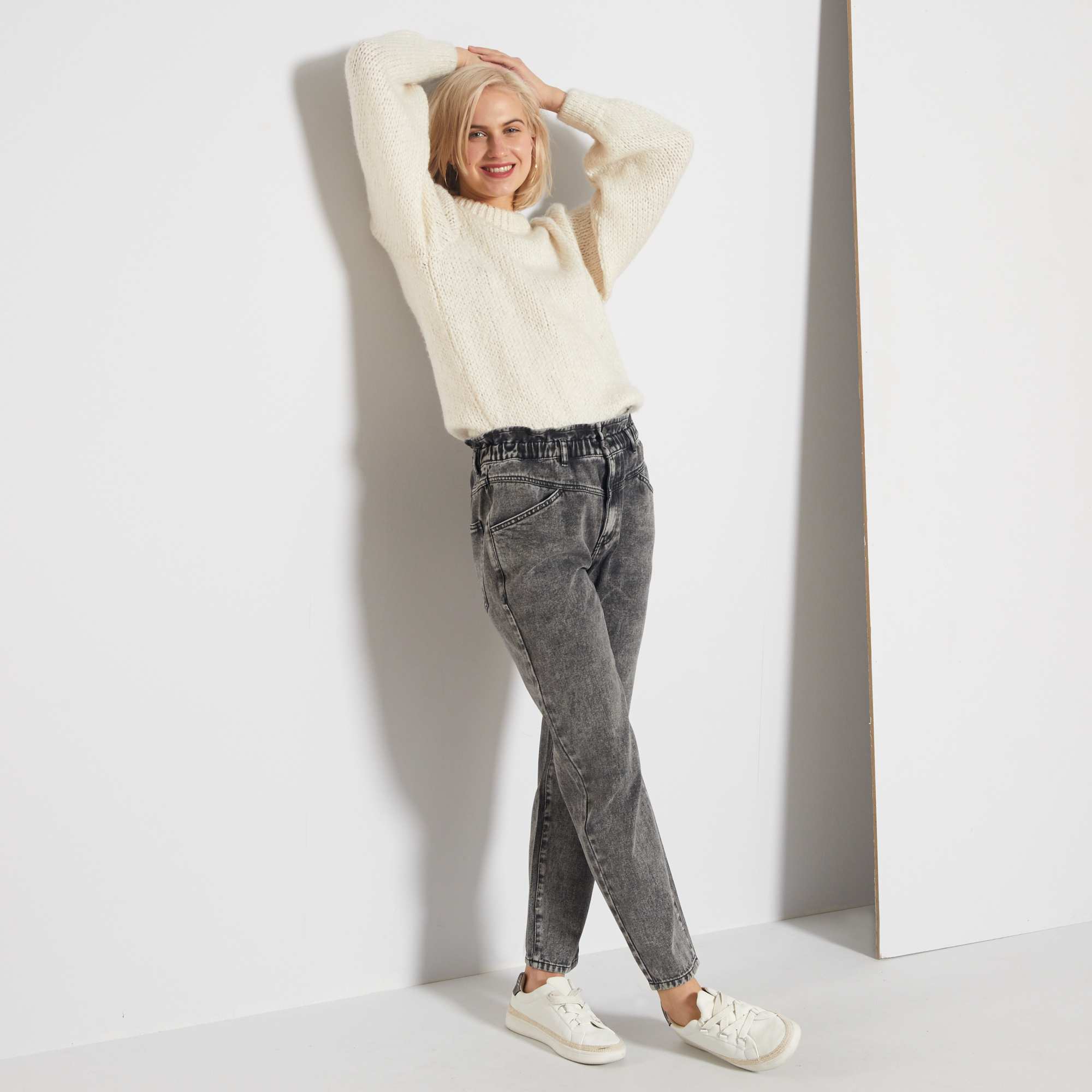 Mom-jeans met elastische tailleband