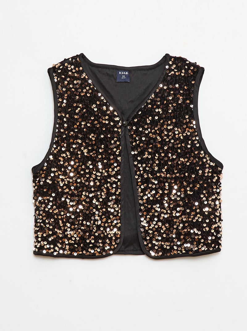 Mouwloos vestje van velours met lovertjes - Geel