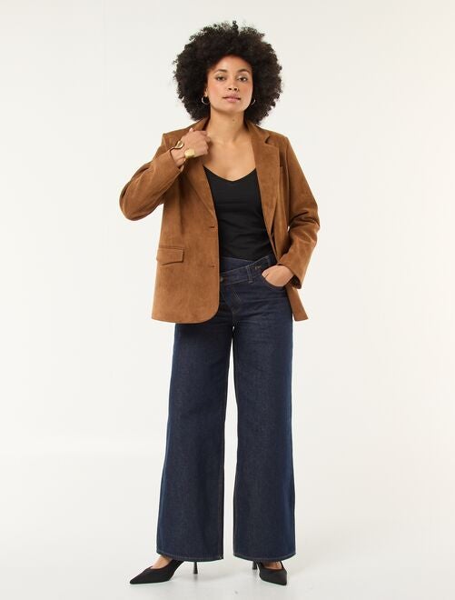 - Ruglengte ongeveer 62 cm. Ons model is 1m75 en draagt maat M