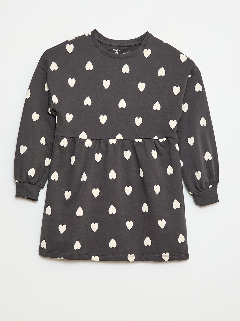 Niet-gevoerde fleece jurk met motiefje - Grijs