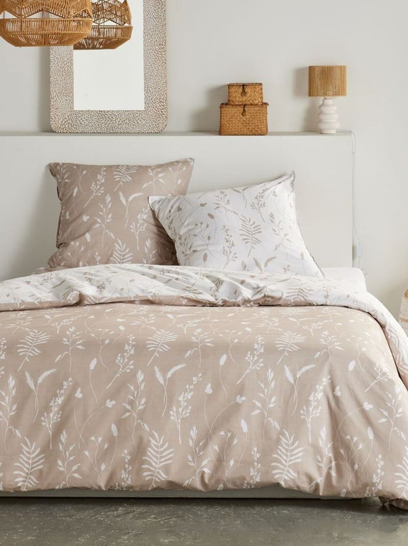 Omkeerbaar dekbedovertrek met bladeren - 2 personen - Grijs