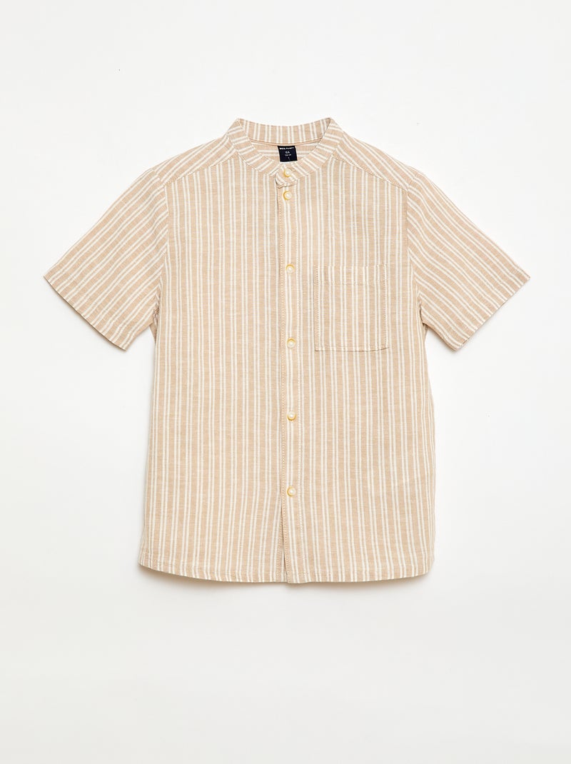 Overhemd met mao kraag en korte mouwen van katoen en linnen - Biege