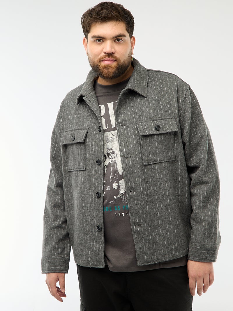 Overhemdjas met knoopsluiting en klepzakken - Grijs