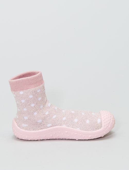 Voering en inlegzool 100% katoen, bovenkant 48% katoen, 41% polyester, 10% elastodiene, 1% elastan, buitenzool 100% pvc