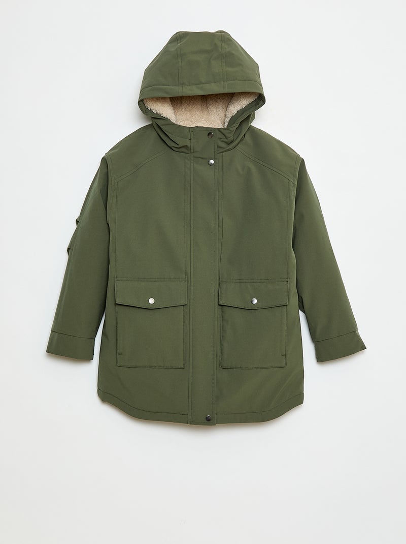 Parka met capuchon en voering met schapenvachteffect - Groen