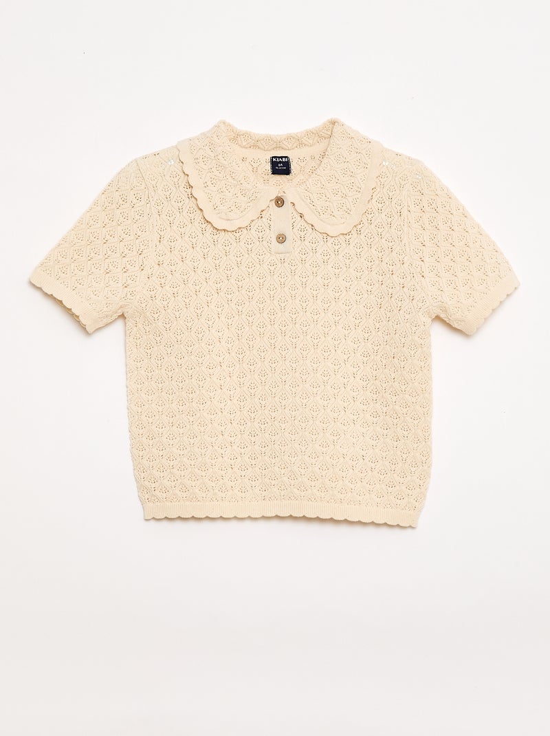 Polo met korte mouwen van ajourgebreide stof - Biege