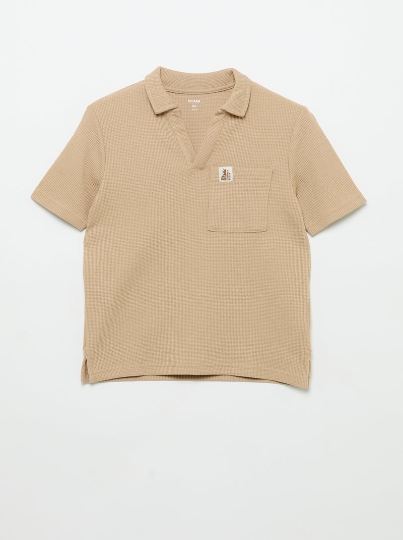 Polo van gewafelde stof - Beige