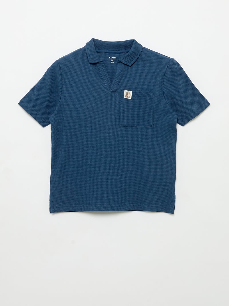 Polo van gewafelde stof - Blauw