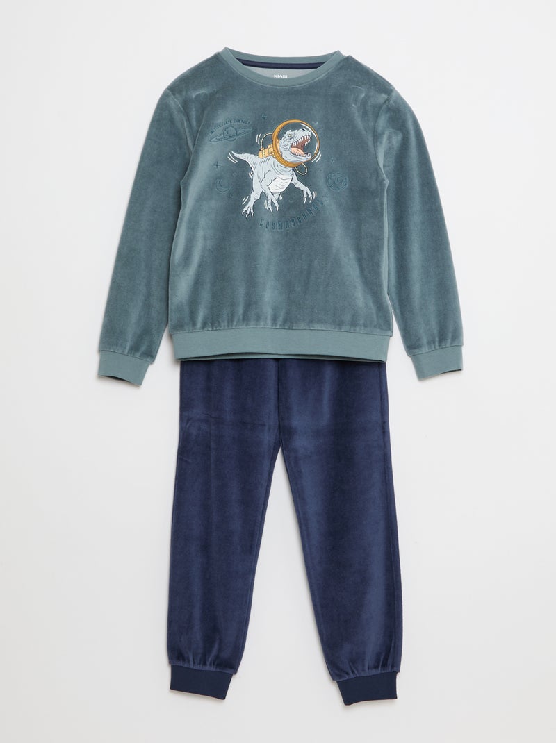 Pyjama van velours met print - Sweater + broek - 2-delig - Blauw